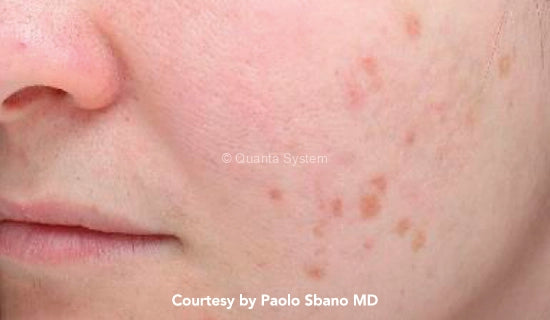 The reduced absorption by melanin and the optical depth of penetration enable the treatment of dermatological vascular lesions of the face, décolleté and neck in absolute safety.