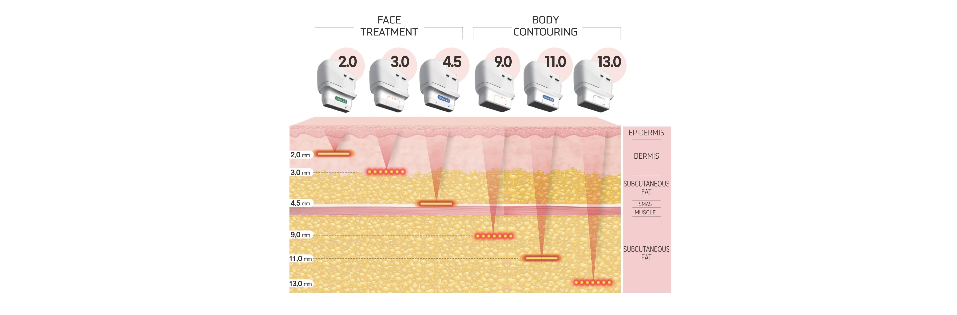 ULTRAcel Q+ is the world’s first linear-shot HIFU device that can dissolve fat from double chins, upper arms, and other parts of the body. It is an innovative HIFU device which can treat the whole face in only 8 minutes! Dot and Linear cartridges customizable to address both face and body.